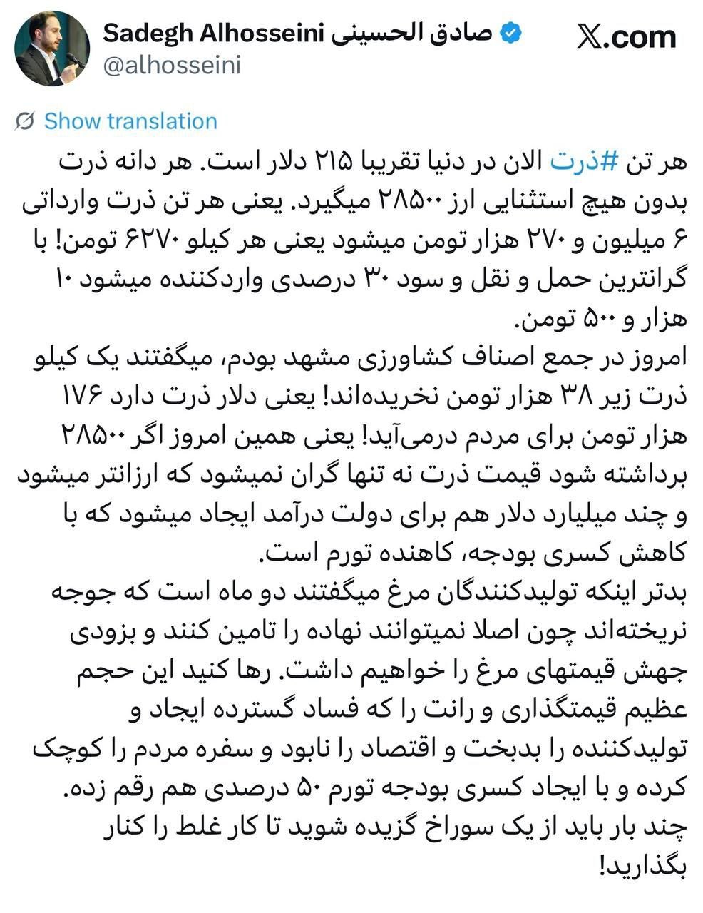 ✔️ یه روز سه تا رفیق بودن به اسم های حسن واردات، جواد آزاد و صادق قرمساق. حسن واردات ارز ۲۸۵۰۰ رو از دولت میگرفت و ذرت وارد میکرد. جواد آزاد رفیق صمیمی حسن وارداته و توی کار واردات با ارز آزاده و صادق قرمساق هم روزنامه نگاره.