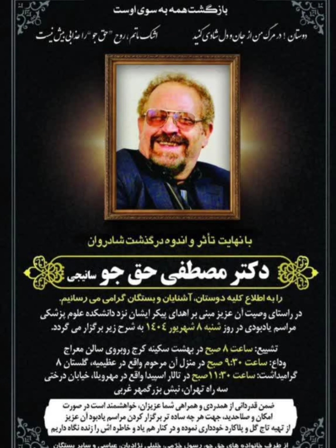 استاد "مصطفی حقجو سانیجی"، شاعر، فرهیخته، استاد برجستهی علوم کامپیوتر درگذشت.