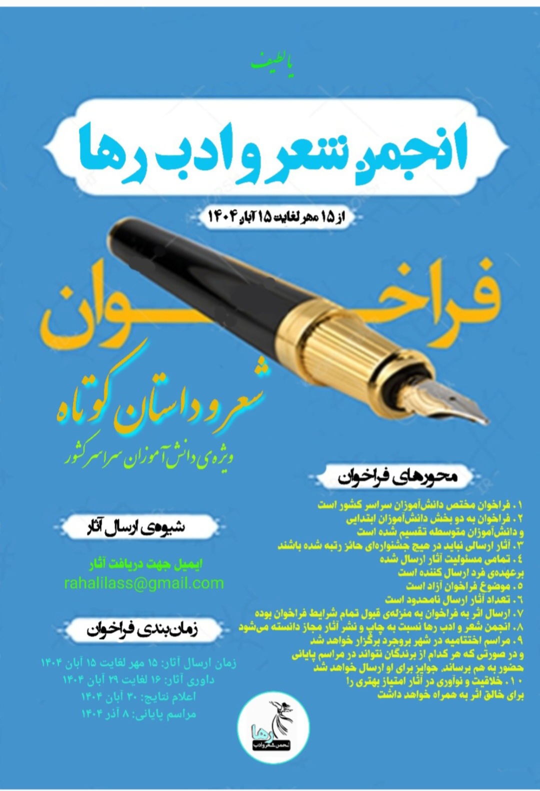 فراخوان شعر و داستان کوتاه انجمن شعر و ادب رها