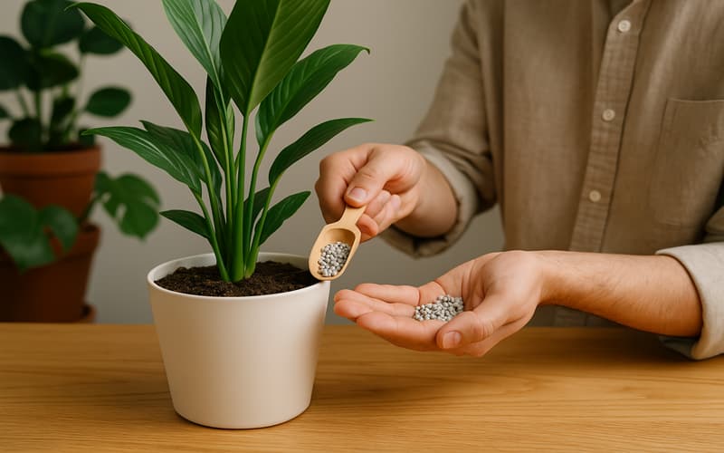 پیش از کوددهی، خاک گلدان را کمی مرطوب کنید تا از سوختن ریشهها جلوگیری شود.