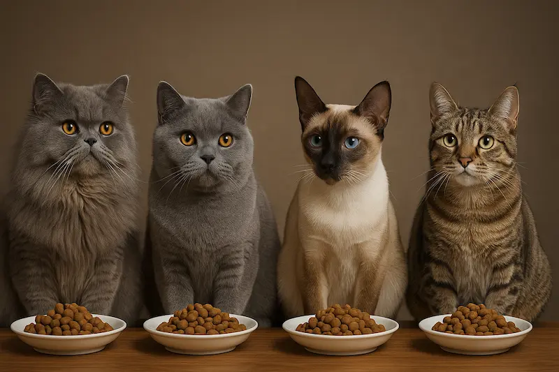 سن و وضعیت گربه را هم در نظر بگیرید. نژاد مهم است، اما گربه بچه با بزرگسال یکسان غذا نمیخورد.