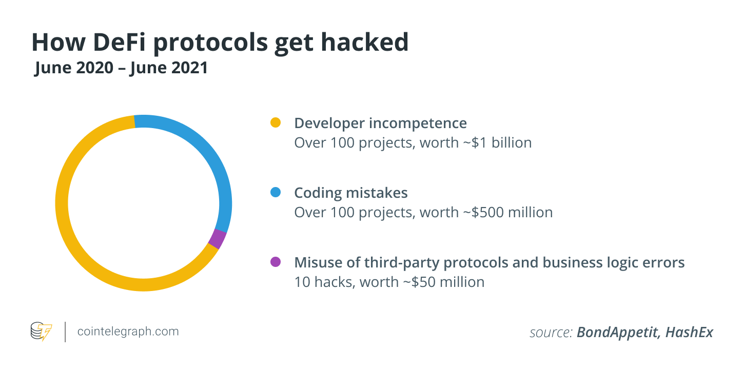 نتایج آماری نشان می دهد بیش از 100 پروژه دیفای هک شده اند. به دلیل خطا در کد نویسی 500 میلیون دلار به کاربران خسارت وارد شده است.