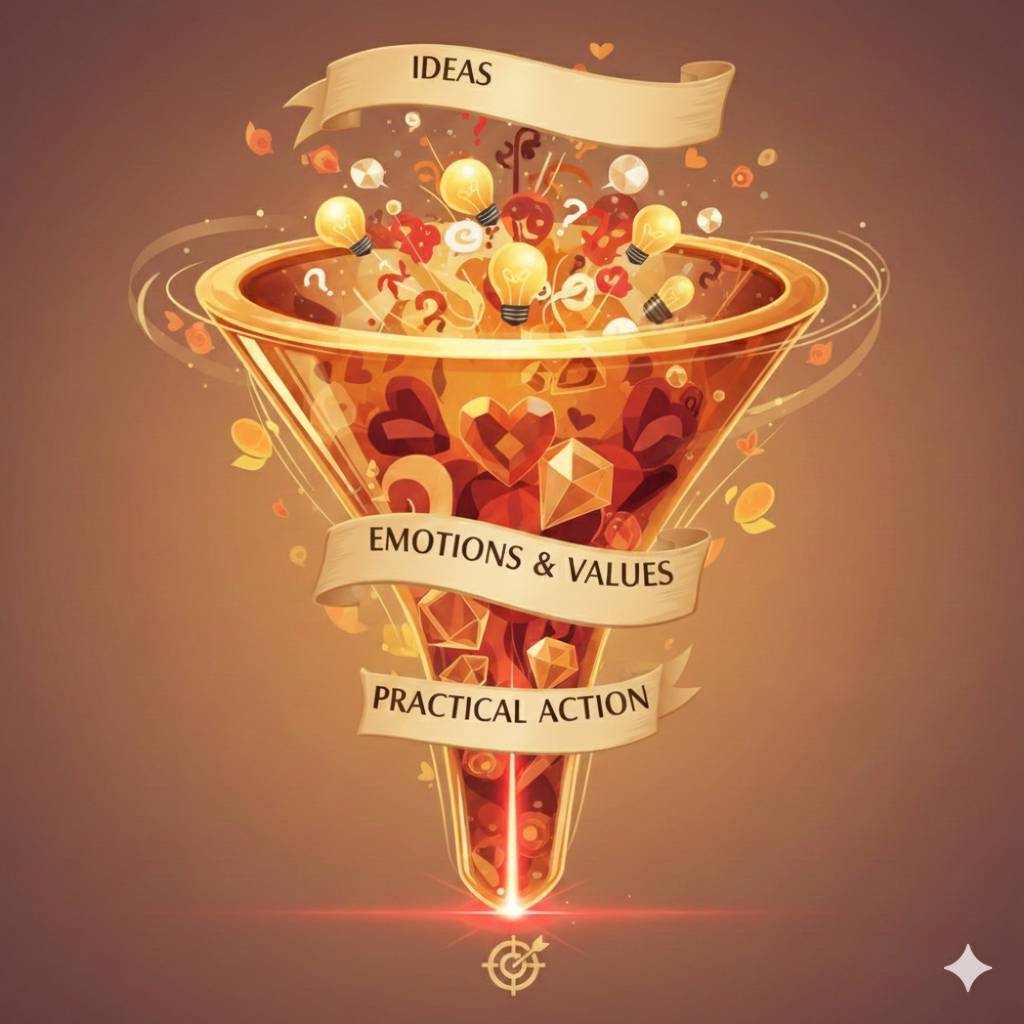 * مثال: "از بین همه این ایدهها، کدام یک همین فردا صبح قابل اجراست که تو را یک قدم جلوتر ببرد؟"