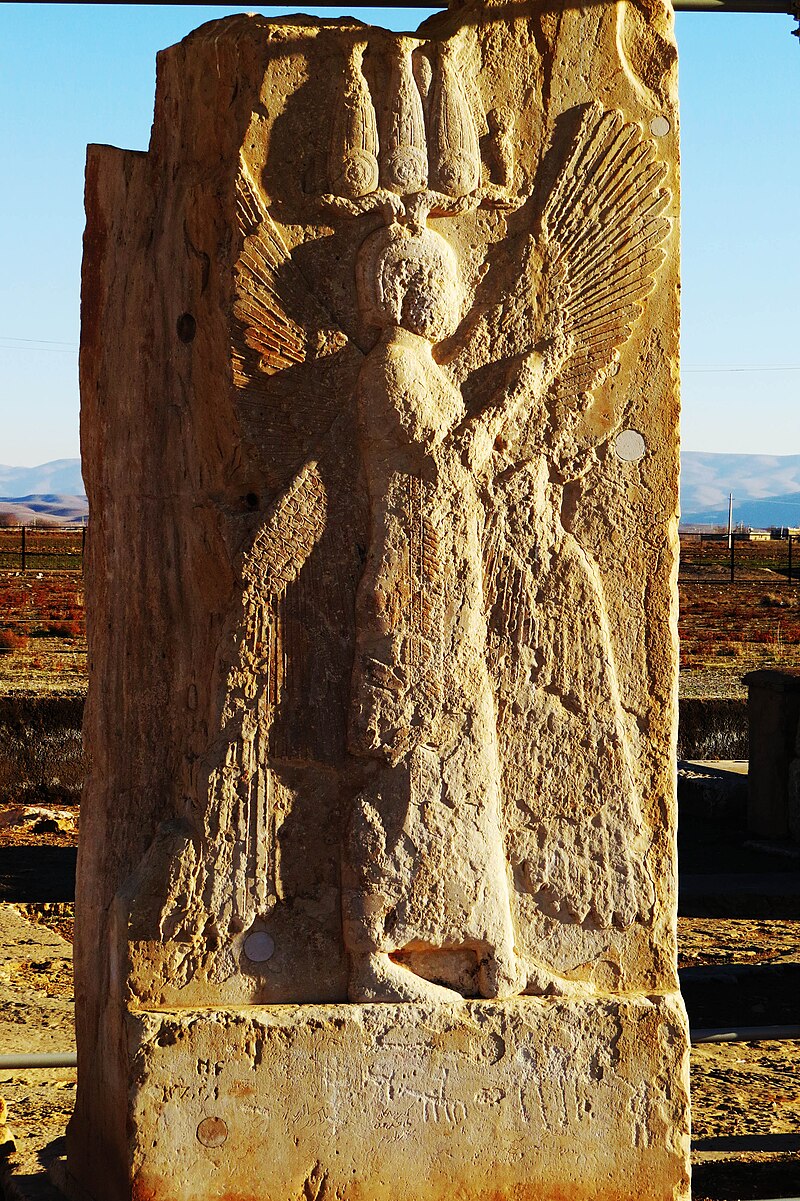 اما آخرین دلیل برای ذوالقرنین بودن کوروش سنگنگارهٔ کوروش که تصویر وی را نمایان میسازد با دوشاخ بر روی سر (ذوالقرنین به معنی دوشاخ) با دو بال گشوده در شیراز - مشهدمرغاب - پاسارگاد - کاخ کوروش که بر فراز آن خود را چنین معرفی مینماید: "منم کوروش، شاه هخامنشی"