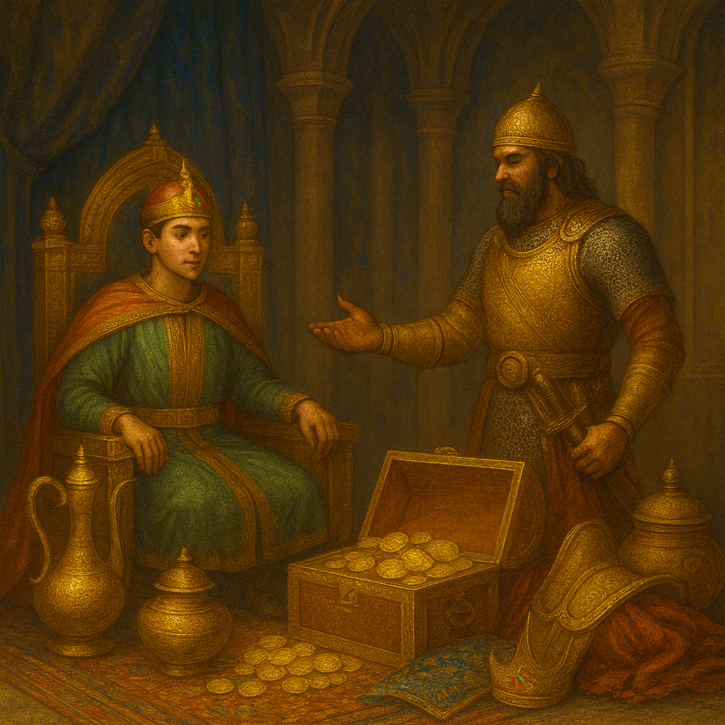 بیاورد گرسیوز آن خواسته|که روی زمین زو شد آراسته