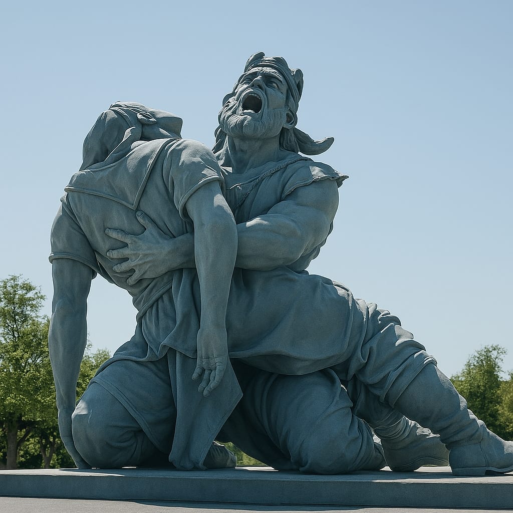 رستم که این بشنید مات و مبهوت خیره گشت، دنیا به چشمش تیره شد! چون قدری به هوش آمد، روی به سهراب زخمخورده کرد و نالان فریاد کشید: چه نشانی از رستم داری که نامش کم شود از جهان!