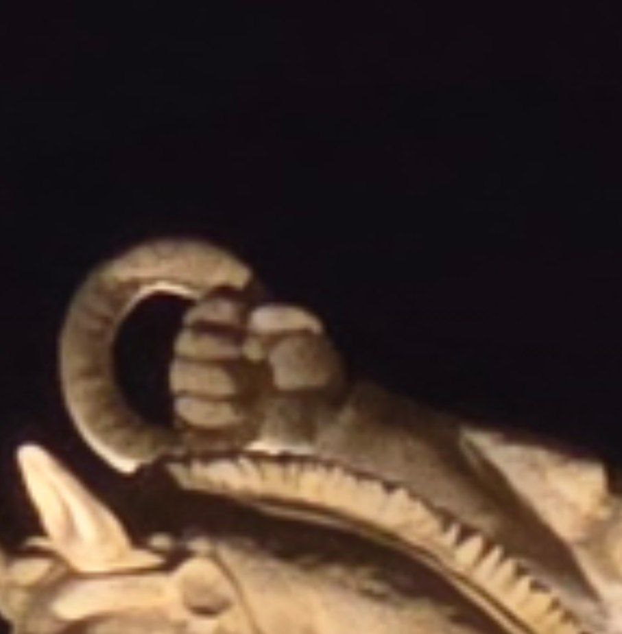 بی شک هنرمند! خبر نداشته این حلقه، در اصل حلقهٔ مهر (دیهیم شهریاری) است که در تصاویری بکار گرفته میشود که پادشاه از اهورامزدا دیهیم شهریاری را میستاند؛ زیرا پادشاهی موهبتی از سوی اهورامزدا به انسانی برگزیده بوده است! مثلاً در تصویر زیر که یکی از نقوش بازمانده از دورهٔ ساسانی است در گوشهٔ شرقی محوطهٔ نقشرستم که اهورامزدا دست راستش را بهسوی اردشیر دراز کرده و حلقهای (دیهیم شهریاری) را به او اهدا میکند و در دست چپش شاخههای برسم را نگه داشته است.