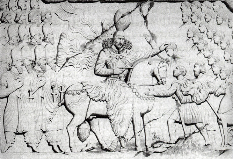 شاپور دستور می دهد صحنهی پیروزی بر امپراتوران رومی در چندجای ساتراپ پارس بر روی سنگ حجاری شود که یکی در نقش رستم [در نزدیکی شهرستان مرودشت استان فارس] در زیر آرامگاه داریوش بزرگ هخامنشی حجاری شد که نشانگر پیوند تاریخی و مشروعیت شاهان ساسانی با شاهنشاهی هخامنشی می تواند باشد که عظمت ایران را در تاریخ ثبت کردهاند و سنگ نگارهی دیگر باز هم در استان فارس اما در شهرستان داراب در موقعیتی بنام نقشبرجسته دارابگر حجاری شد.