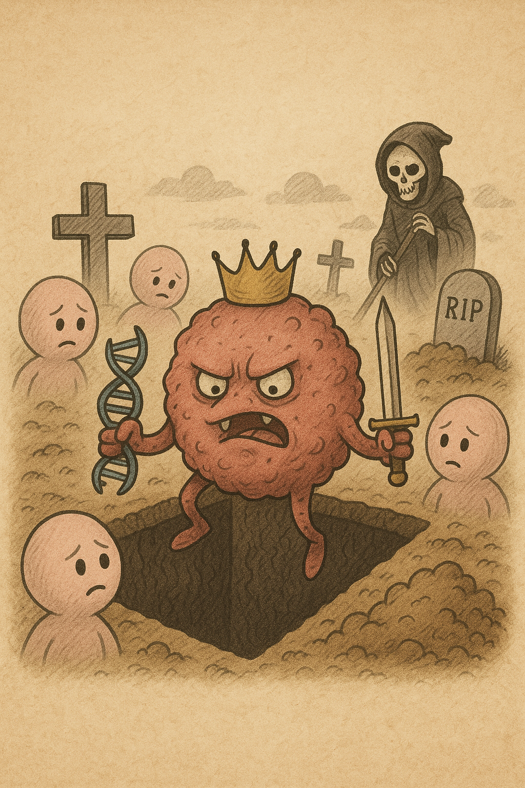 او از تمام داروها و شیمیدرمانی قسر در میرود و زمانی که فکر میکند قدرت مطلق و فرمانده بدن شده است مرگ، هم او هم میزبانش را به درون قبر میکشاند!