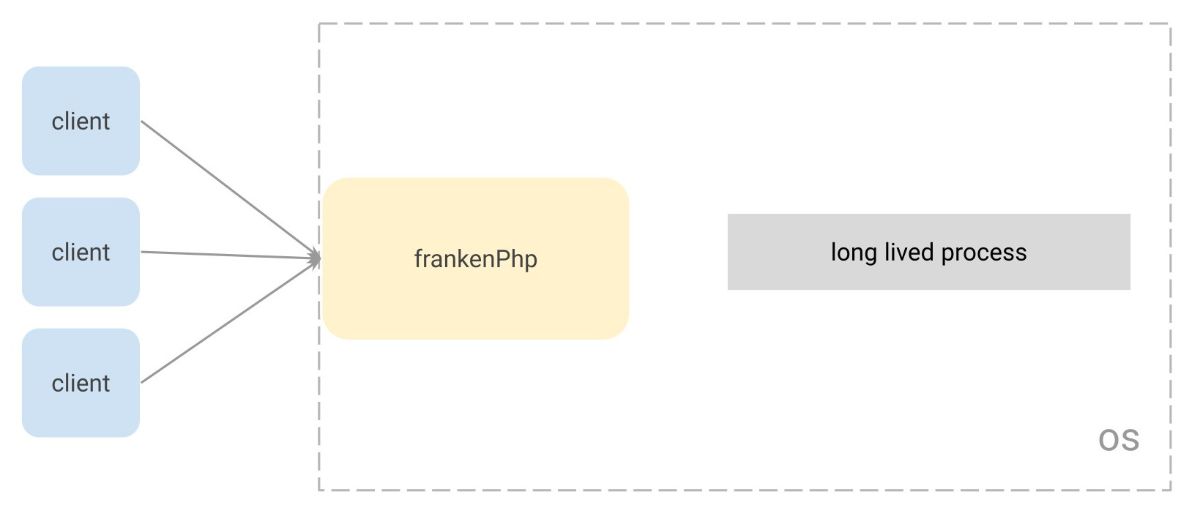 در سالهای اخیر، اجرای PHP وارد فاز جدیدی شده و با ظهور application serverهایی مانند FrankenPHP، مسیر اجرای کد PHP بهصورت مستقیم و مستقل از وبسرورهای سنتی ممکن شده است. application serverها برخلاف مدلهای سنتی که PHP فقط نقش مفسر سمت سرور را دارد، یک لایهی ترکیبی بین وبسرور، زبان برنامهنویسی و مدیریت درخواستها فراهم میکنند. در این مدل، خود application server توانایی دریافت درخواست HTTP، اجرای کد PHP و ارسال پاسخ را بدون وابستگی به Apache یا Nginx دارد.