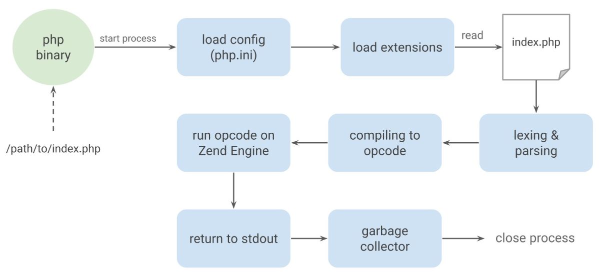 یکی از مزایای بزرگ اجرای CLI، سرعت و سادگی آن است؛ زیرا نیازی به بارگذاری وبسرور یا ساختار پیچیدهی درخواستی ندارد. همچنین بسیاری از ابزارها مانند Composer، PHPUnit یا Laravel Artisan نیز بر پایهی همین CLI ساخته شدهاند. در زمان اجرا، CLI همان چرخهی پردازش استاندارد PHP را طی میکند (از parsing تا اجرای opcode در Zend Engine) اما در بستری سبکتر و بدون سربار ارتباط با وب سرور.