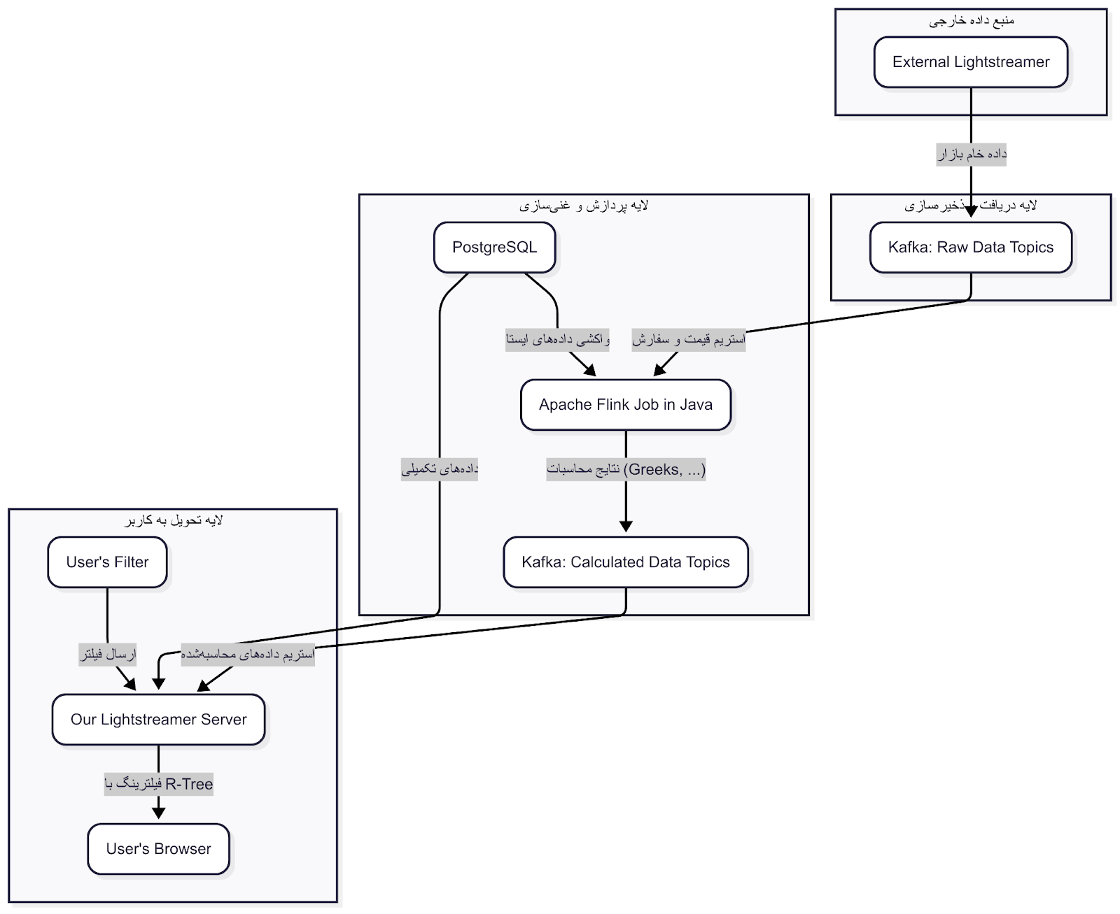 هدف نهایی این بود که کاربر در پلتفرم معاملاتی خودش بتونه پارامترهای پیچیدهای مثل ارزش استراتژیهای آپشن (Covered Call) و پارامترهای یونانی اختیار معامله (Option Greeks) مثل دلتا، گاما و تتا رو به صورت لحظهای ببینه. این یعنی ما باید:
