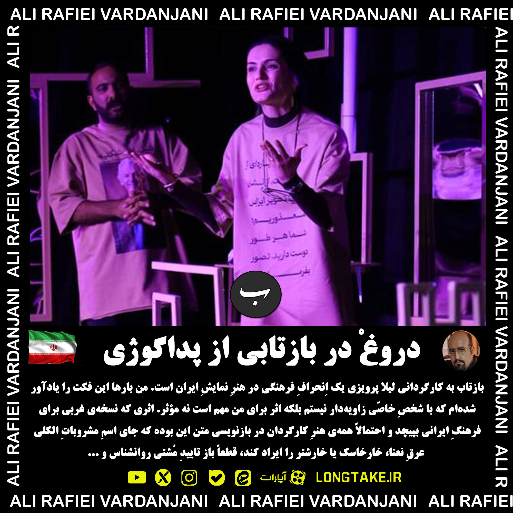 بازتاب به کارگردانی لیلا پرویزی یک اِنحرافِ فرهنگی در هنرِ نمایشِ ایران است. من بارها این فکت را یادآور شدهام که با شخصِ خاصّی زاویهدار نیستم بلکه اثر برای من مهم است نه مؤثر. اثری که نسخهی غربی برای فرهنگِ ایرانی بپیچد و احتمالاً همهی هنرِ کارگردان در بازنویسی متن این بوده که جای اسمِ مشروباتِ الکلی، عرقِ نعنا، خارخاسک یا خارشتر را ایراد کند، قطعاً باز تاییدِ مُشتی روانشناس و دکتر به میزانِ هُنری بودنِ آن افزوده نخواهد شد. این اثر، نه مؤثر، پُر از تالیفاسدهای اخلاقی در تعریفِ روابطِ انسانی است. مانندِ «دروغ» مهرزاد مشکلگشا، زوجهایی داریم که بیبند و باری در آنها موج میزند و برای سوپاپ اطمینان بخشیدن به این انحرافِ اخلاقی دَنیِل از پاتریک میپرسد: یعنی هیچ تعهدی به همسرِ قبلیات که از او دو بچهداری در خود نمیبینی؟ من پیشنهاد میدهم فریب این دیالوگِ مصنوعی را نخورید: زیرا ما در اِدامه متوجه میشویم دَنیِل برای فخرفروشیِ پاتریک از او کینه به دل دارد و به او حق میدهد با یک دخترِ 20 سالهی جذاب، اِما، رابطه داشته باشد، نه مسئلهی مطرح شده و...