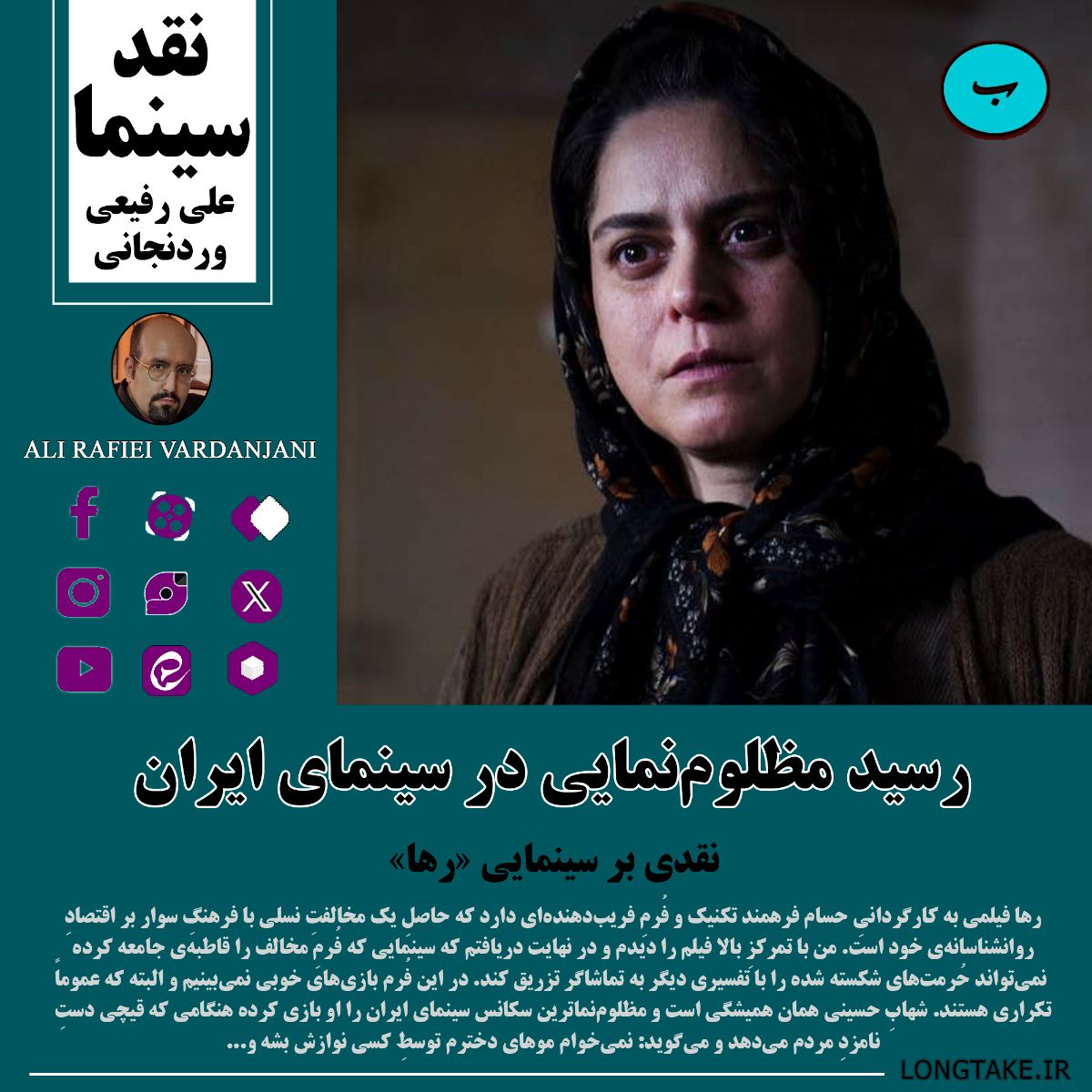 رها فیلمی به کارگردانیِ حسام فرهمند تکنیک و فُرمِ فریبدهندهای دارد که حاصلِ یک مخالفتِ نسلی با فرهنگِ سوار بر اقتصادِ روانشناسانهی خود است. من با تمرکزِ بالا فیلم را دیدم و در نهایت دریافتم که سینمایی که فُرمِ مخالف را قاطبهی جامعه کرده نمیتواند حُرمتهای شکسته شده را با تفسیری دیگر به تماشاگر تزریق کند. در این فُرم بازیهای خوبی نمیبینیم و البته که عموماً تکراری هستند. شهابِ حسینی همان همیشگی است و مظلومنماترین سکانسِ سینمای ایران را او بازی کرده هنگامی که قیچی دستِ نامزدِ مردم میدهد و میگوید: نمیخوام موهای دخترم توسطِ کسی نوازش بشه و... این کاراکتر چه تفاوتی با مردی که سرش را از عصبانیت به در میکوبد، در «جدایی نادر از سیمین» فرهادی دارد، چه تفاوتی با ویژگیهای اخلاقی کسی دارد که از فرزندش عُذرخواهی میکند که او را بدنیا آوره، در «حوض نقاشی» میری، ما مادر بودنِ شاکری را نیز نمیتوانیم باور کنیم. شاکری در این فیلم اصلاً خوب نیست. خوبی نیست. بدردِ مظلومنماییهای این چُنینی نمیخورد. تکراری بودن در بازیهای فیلم خلاصه نمیشود و ما فیلمنامهای هم داریم که پُر از فکتهای پَُشتِپردهای از سینمای ایران هستند. نکاتی که اصلاً باورپذیر نیست و غلطِ تدوینی هم دارد که یکیشان را میتوان در به عدمِ ارتباطِ حسّی میانِ وقتی توحید دستش را زخم میکند با پلانِ بعدِ خود دید و...
