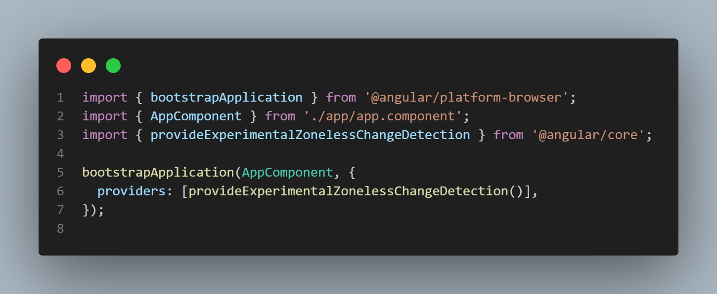 با این تغییرات، Angularبدون zone.js کار میکنه و برای تشخیص تغییرات از سیگنالها استفاده میکنه.