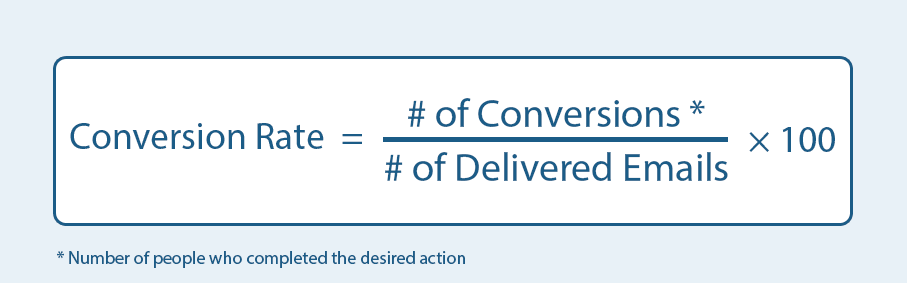 برای محاسبه ی درصد نرخ تبدیل ایمیل تعداد تبدیل ها را تقسیم بر تعداد ایمیل های فرستاده شده کنید و در 100 ضرب کنید.