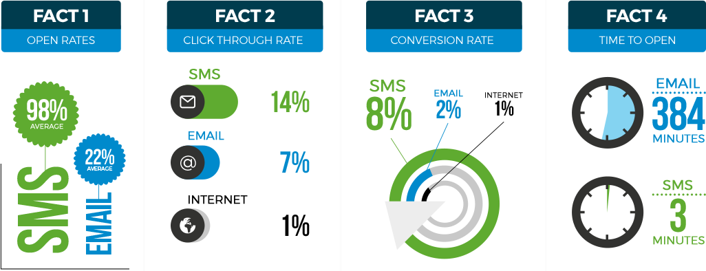 همانطور که می دانید، درصد باز شدن sms 98% است. و واقعا عجیب است که بازاریابان آن را جدی نمی گیرند. نرخ پاسخ sms هشت برابر بیشتر از ایمیل و نرخ کلیک 36٪ است ، نرخ تبدیل بازاریابی پیامکی بسیار چشمگیر است. به جای یک معیار واحد نرخ تبدیل ، در اینجا چند مورد آورده شده است:
