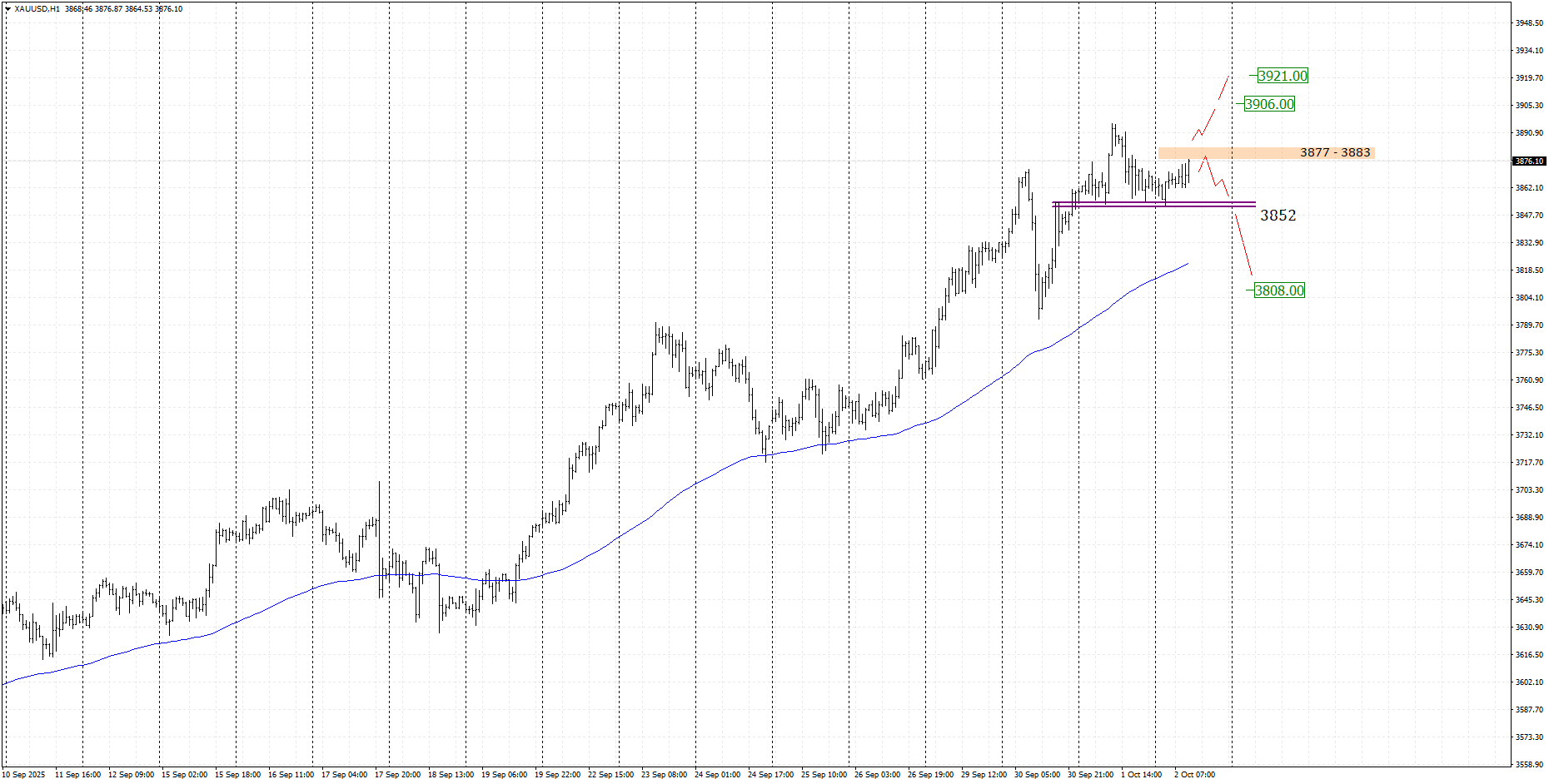 در صورت شکست حمایت 3852 دلار احتمال وقوع سناریوی اصلاح عمیق تا محدوده 3808 دلار تقویت می شود.