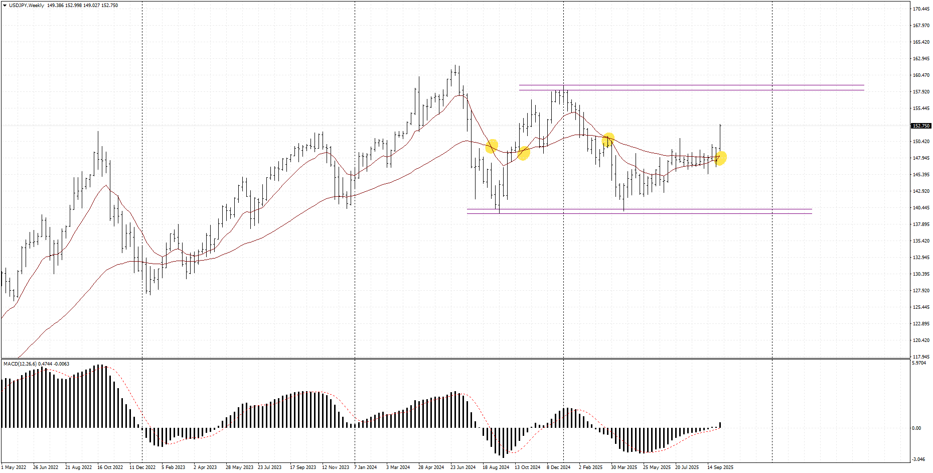 وضعیت تکنیکی میان مدت USDJPY :