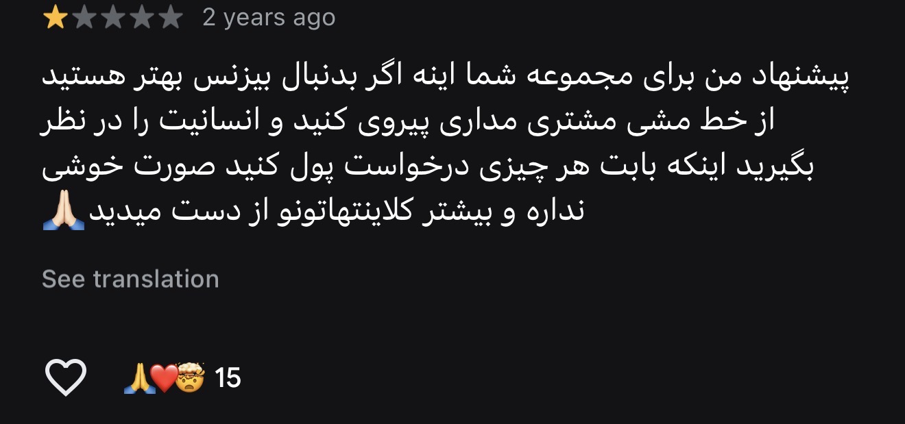 موضوع دیگری که بر این تجربه سایه انداخت، این بود که پس از این اتفاق، هیچگونه عذرخواهی یا تلاشی برای جبران شرایط ناراحتکنندهای که ایجاد شده بود، از سوی مجموعه صورت نگرفت. نه توضیحی درباره اختلال سامانه داده شد، نه تلاشی برای دلجویی انجام شد، و نه حتی یک پیام ساده برای ابراز تأسف از وضعیت پیشآمده ارسال شد. این سکوت، بیش از هر چیز نشاندهنده نبود سازوکاری برای رسیدگی به تجربهی مراجعان بود.