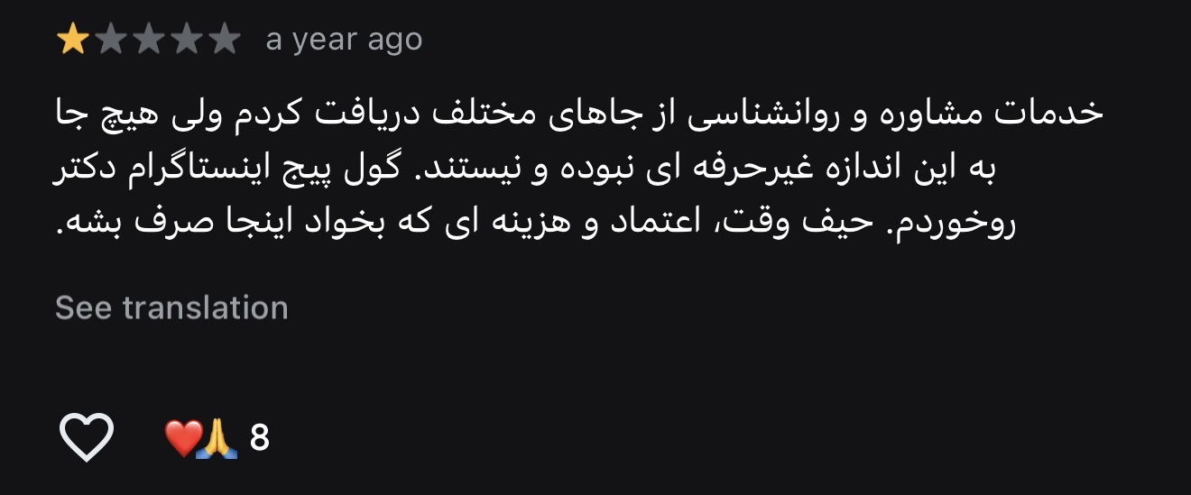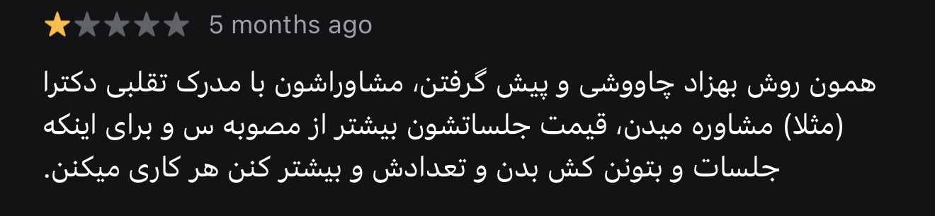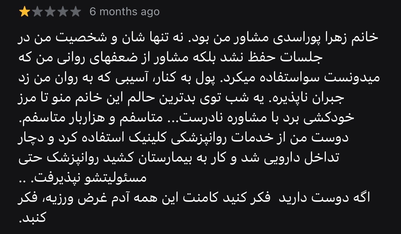 این تنها تجربه من نیست. با نگاهی به نظرات ثبتشده در گوگلمپ این کلینیک، میتوان نارضایتیهای مشابهی را مشاهده کرد.