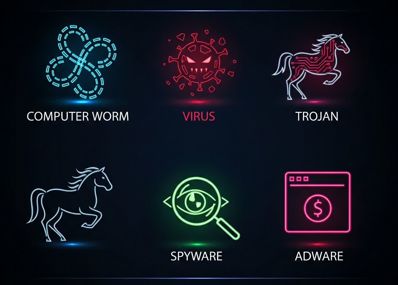 ویروسهای کامپیوتری تنها یکی از انواع بدافزارها هستند.