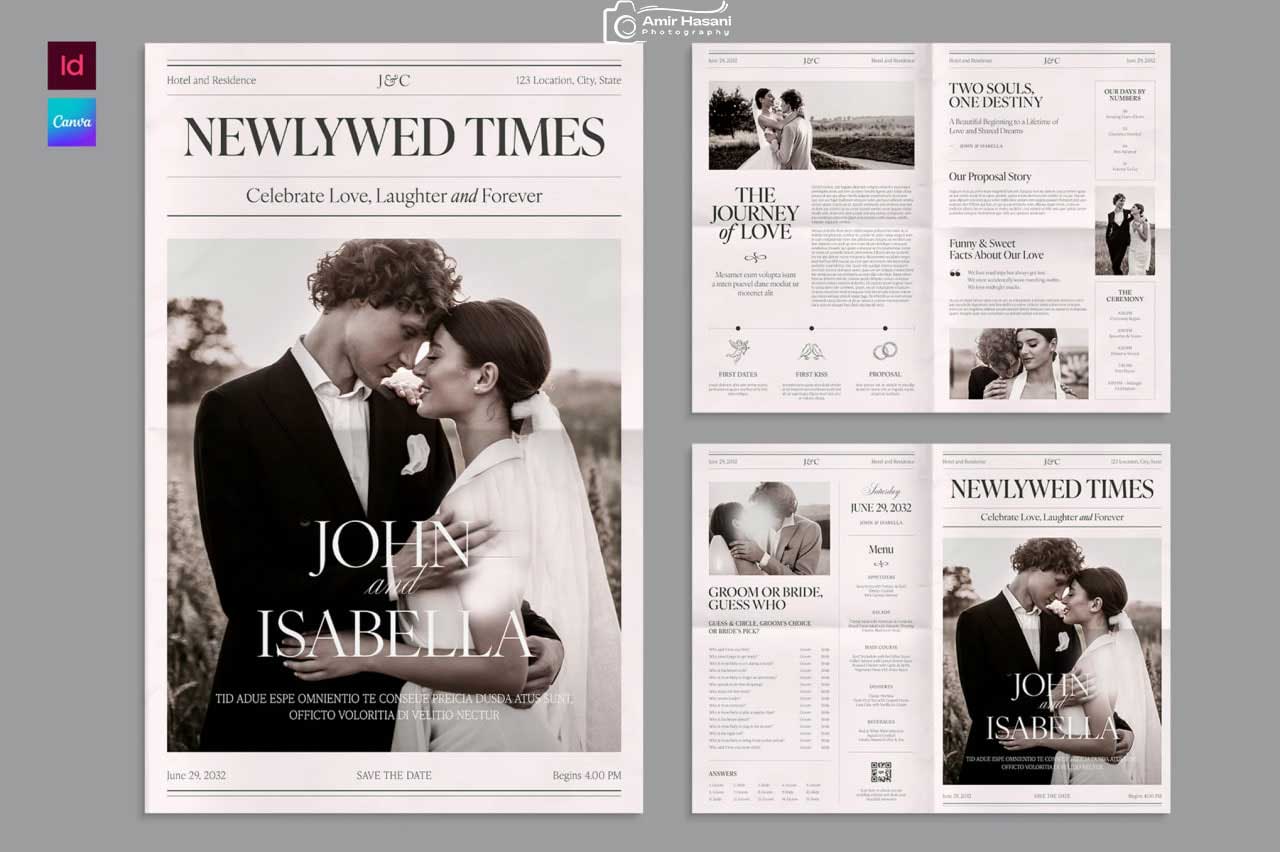 دانلود قالب روزنامه عروسی کلاسیک، InDesign و Canva