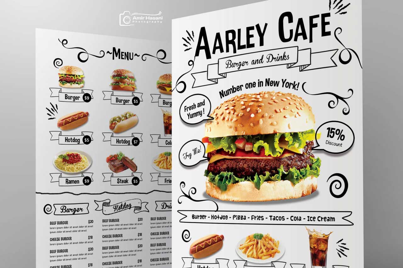 منوی کافه و کارت ویزیت - Doodle Cafe Menu + Business Card