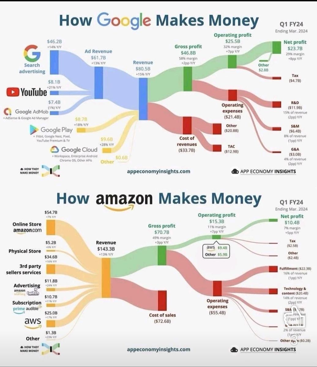 - آمازون: هزینههای بالای لجستیک و رقابت فشرده در خردهفروشی و ابر.