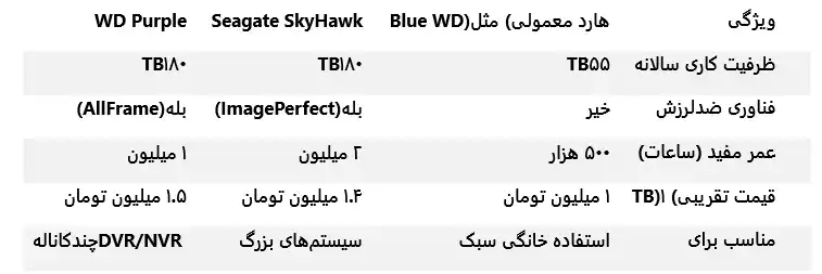 WD Purple برای بار سنگین عالی است، اما SkyHawk در محیطهای پرلرزش برتری دارد. هارد معمولی؟ فقط برای تست اولیه!