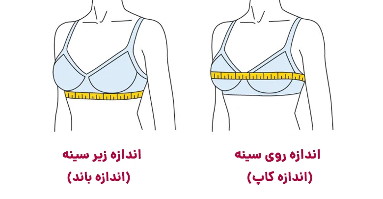 دور سینه و زیر سینه را با متر خیاطی اندازه بگیرید.