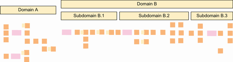 یکی از موضوعات اساسی در تلاش برای مدرنسازی معماری، طراحی مرزهای نرمافزار و سازمانی است که باید توسط مرزهای دامنه هدایت شود. برای من، Event Storming ابزاری ضروری در این فرآیند است و اغلب به عنوان نقطه شروع عمل میکند زیرا رویدادگردانی میتواند به دامنهها و زیردامنهها تقسیم شود، همانطور که تصویر نشان داده شده است.