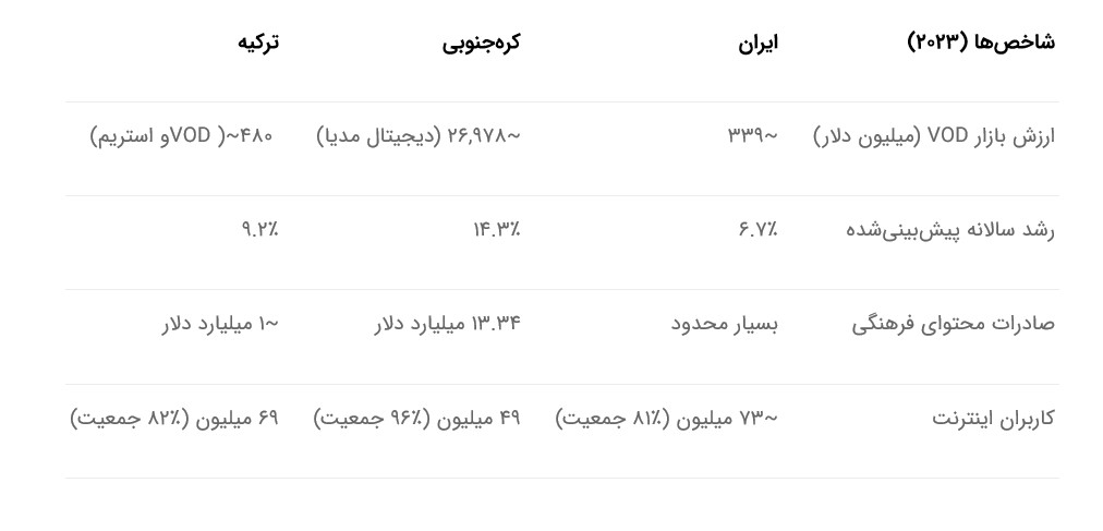 این آمار نشان میدهد که زیرساخت کاربر در ایران حاضر است و بازار محتوا ظرفیت رشد دارد، اما نیاز به سیاستگذاری دقیق و منابع دارد.
