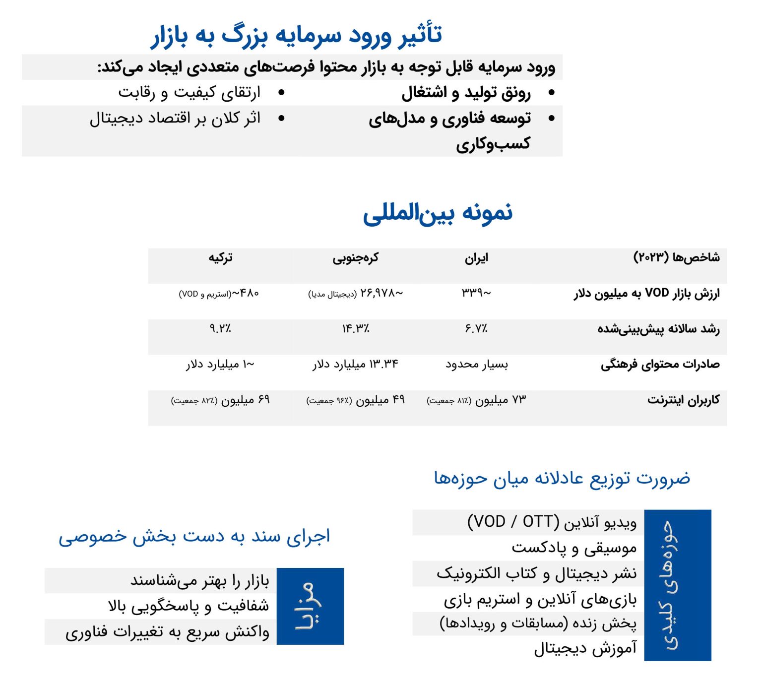 ورود این سرمایه بزرگ به بازار محتوا، اگر به درستی مدیریت شود، میتواند تحولات شگرفی در اقتصاد دیجیتال کشور ایجاد کند: