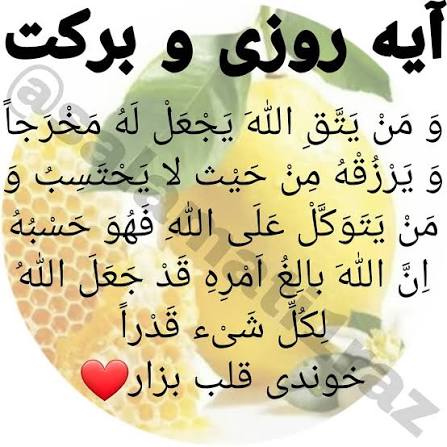 و من یتق الله یجعل له مخرجا و یرزقه من حیث لایحتسب ، ومن یتوکل علی الله فهو حسبه، ان الله بالغ امره، قد جعل الله لکل شی قدرا .