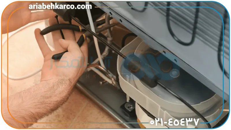 تعمیر قطعات کلیدی: تعمیر یا تعویض قطعاتی مانند کمپرسور، فن، ترموستات، لاستیک درب و سیستم دیفراست.