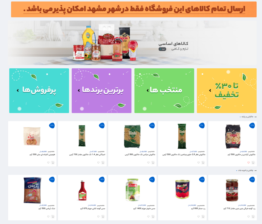 آریاکا، سوپرمارکت اینترنتی مشهد در راستای تسهیل امر خرید اینترنتی و در جهت کاهش رفت و آمدهای درون شهری و در نهایت کاهش ترافیک و همچنین جلوگیری از شیوع ویروس کرونا از سال 1398 فعالیت خود را آغاز نمود. سوپرمارکت اینترنتی آریاکا بیش از 2000 کالای متنوع در دسته بندیهای مختلف خواربار شامل نان، برنج، روغن، قندوشکر، حبوباتوسویا، ماکارانیورشته و موادغذایی شامل لبنیات، چاشنی و ادویه جات، غذاهای آماده و کنسروجات، دسر، تنقلات، مواد پروتئینی و نوشیدنی شامل انواع نوشابه، دوغ، دلستر، چای و دمنوش، نسکافه و کافی میکس، قهوه فوری، شربت سن ایچ و شوینده نظافت شامل انواع پاک کننده سطوح، ضدعفونی کننده، شوینده حمام و سرویس بهداشتی، لوله بازکن، خوشبوکننده هوا، مایع دستشویی، مایع ظرف شویی، گاز پاک کن، شوینده ماشین ظرف شویی، پودر شستشویی دستی، پودر ماشین لباس شویی، مایع لباس شویی، دستمال توالت و میوه و سبزیجات تازه و ... را بصورت آنلاین عرضه میکند. آریاکا این امکان را به کاربران میدهد که تمام محصولات را فقط با چند کلیک بصورت یکجا خرید کنند و تنها در یک ساعت درب منزل تحویل بگیرند آریاکا امکان پرداخت اینترنتی و پرداخت درب منزل را برای مشتریان خود فراهم کرده است.