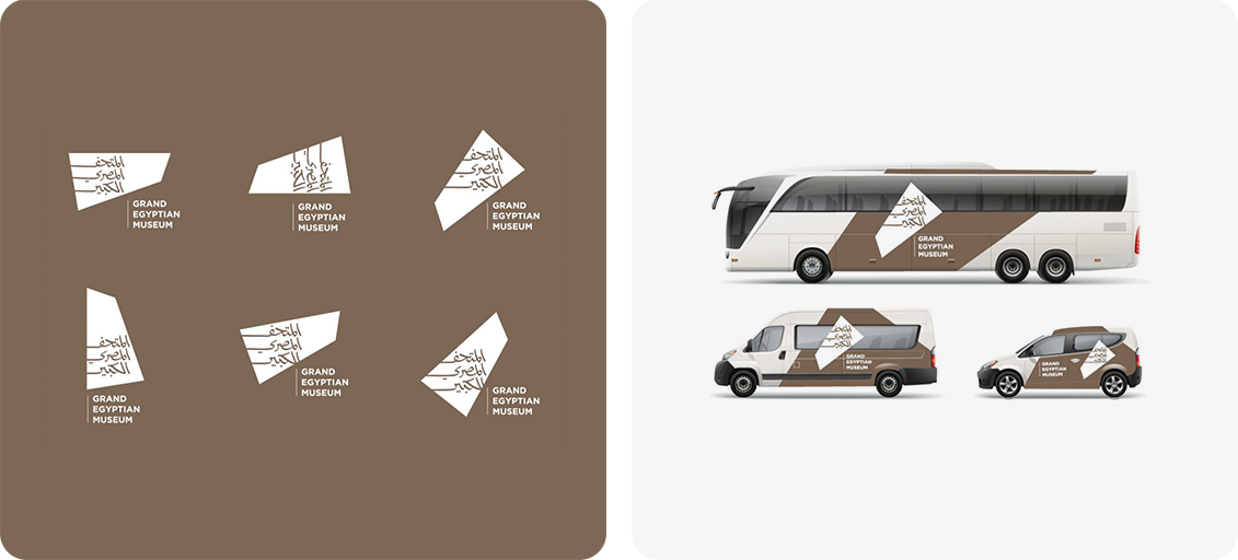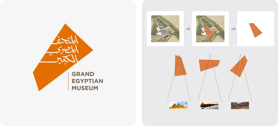 لوگوی موزه بزرگ مصر به تازگی (سال ۲۰۲۵) معرفی شد و بر اساس نقشه و زیربنای موزه (یک چهارضلعی مختلفالاضلاع) شکل گرفته. هر چند فرم همیشه ثابت هست اما زوایا و چیدمان آن با لوگوتایپ میتواند متفاوت باشد و در دو رنگ نارنجی و خاکی استفاده میشود.