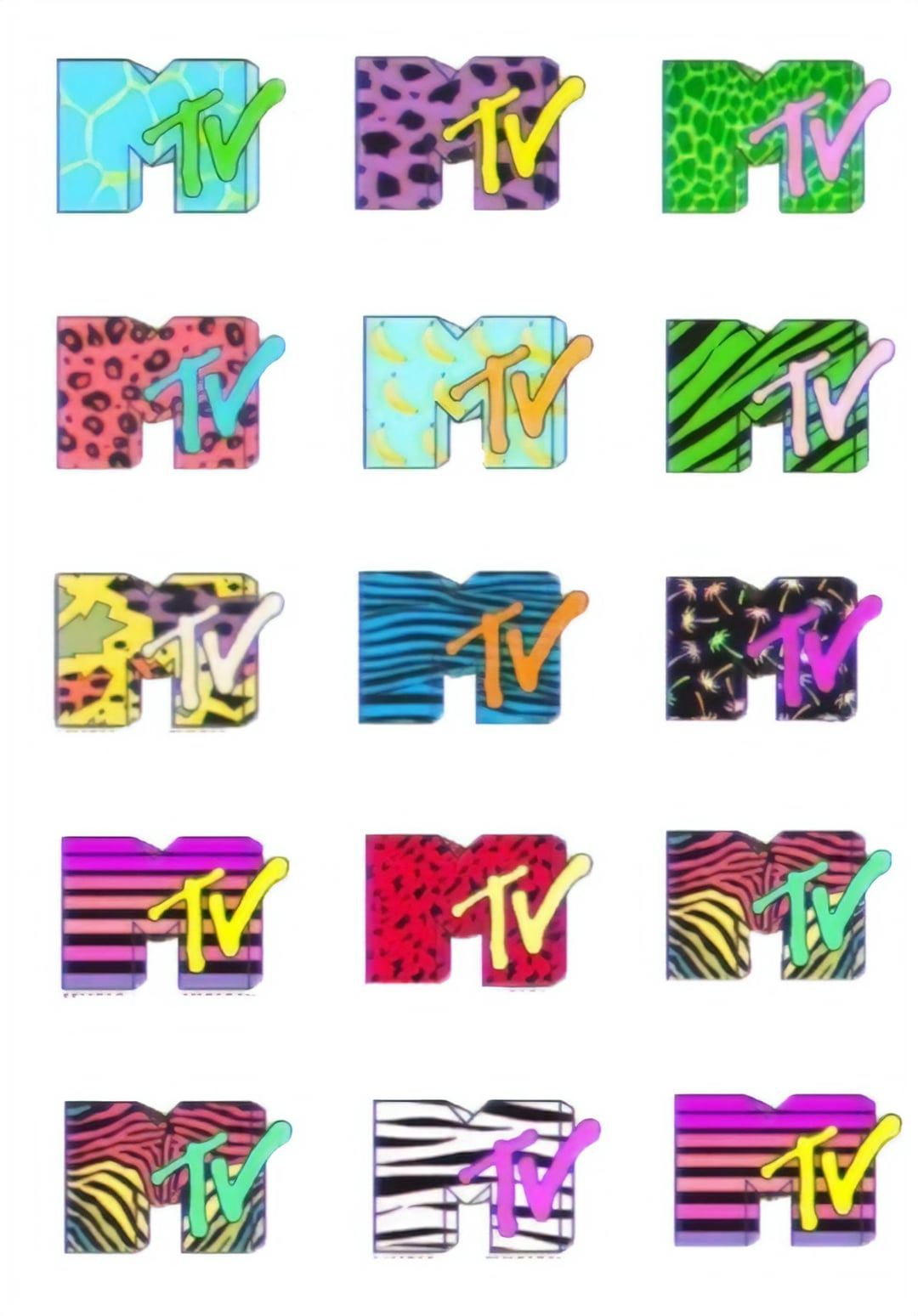 کانال تلویزیونی MTV (شبکه تلویزیونی موزیک) یک لوگوی بازیگوش و پویا داشت تا بیانگر سبکهای مختلف موزیک باشد و از جنبش طراحی ممفیس الگو گرفته بود.