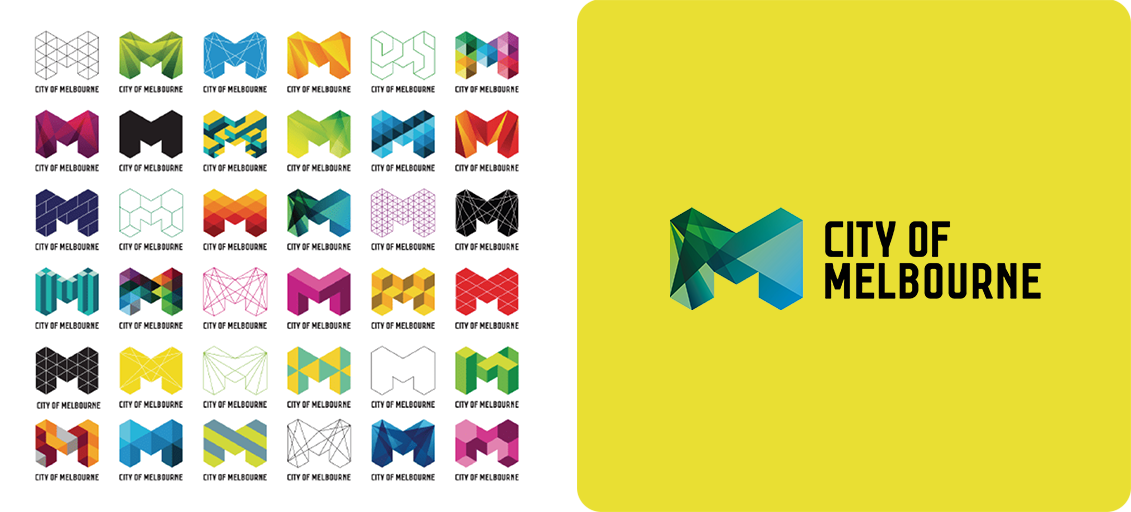 ویژگی: حرف M با ساختار هندسی ثابت، اما با رنگ، بافت و الگوی متفاوت در کاربردهای مختلف (گردشگری، فرهنگ، اقتصاد و...)