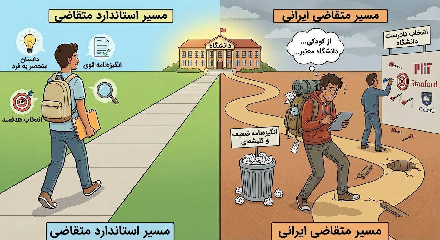 اولین و شاید شایعترین اشتباه، نوشتن انگیزهنامه یا Statement of Purpose ضعیف و کلیشهای است. انگیزهنامه مهمترین بخش پرونده شماست، جایی که باید داستان خود را به شکلی قانعکننده و منحصربهفرد روایت کنید. کمیتههای پذیرش روزانه صدها انگیزهنامه مشابه میخوانند که با جملاتی مثل «من از کودکی علاقهمند به علم بودم» یا «میخواهم در کشور شما تحصیل کنم چون دانشگاههایتان معتبر هستند» شروع میشوند. این نوع نوشتهها نه تنها تأثیرگذار نیستند، بلکه نشاندهنده عدم تلاش و تفکر عمیق هستند.