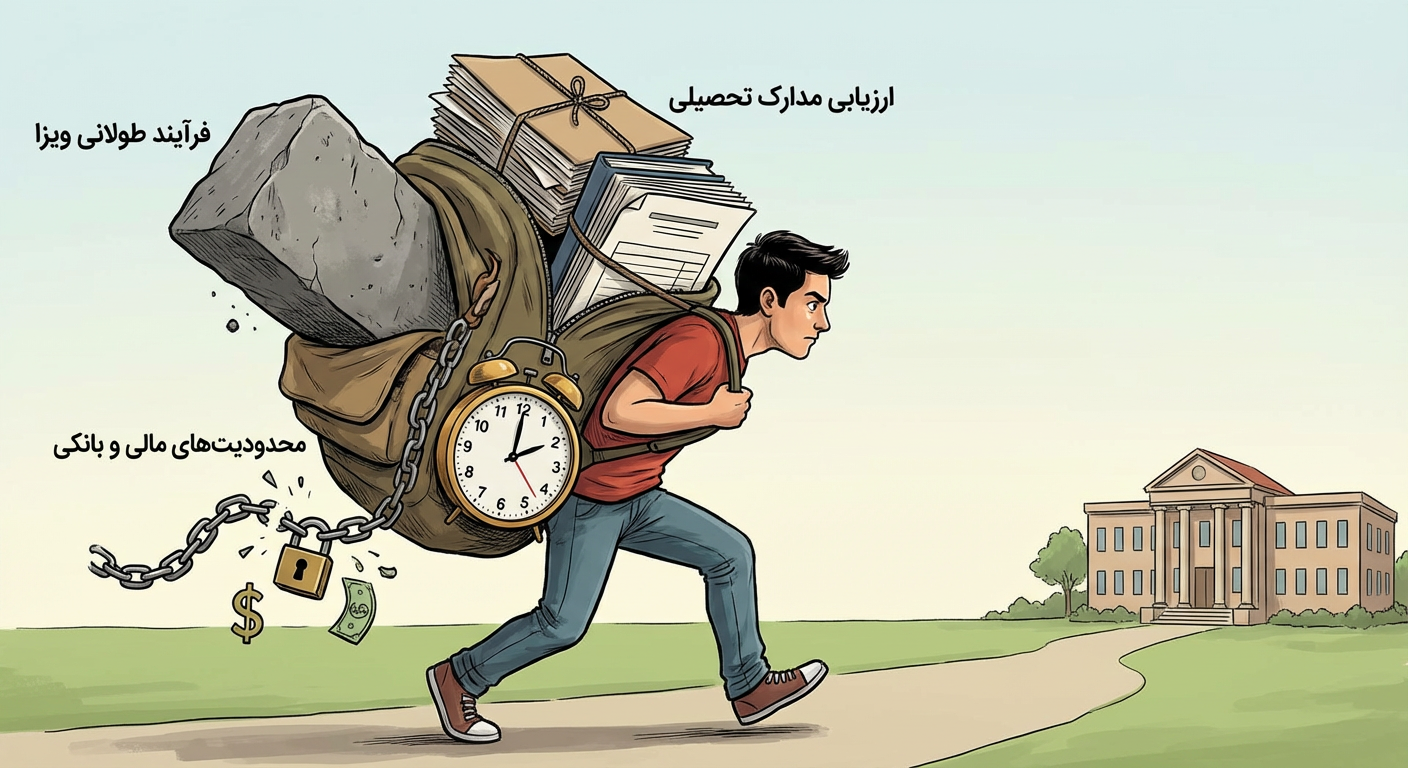 وقتی صحبت از مهاجرت تحصیلی میشود، دانشجویان ایرانی با چالشهایی مواجه هستند که همتایان اروپایی یا آمریکاییشان هرگز تجربه نمیکنند. اول از همه، سیستم آموزشی ایران با سیستم بسیاری از کشورها متفاوت است و تبدیل معدل و ارزیابی مدارک خود فرآیندی زمانبر است. بسیاری از دانشجویان نمیدانند که دانشگاههای خارجی چگونه معدل ایرانی را ارزیابی میکنند یا اصلاً آیا مدرک دانشگاه آنها معتبر شناخته میشود یا خیر.