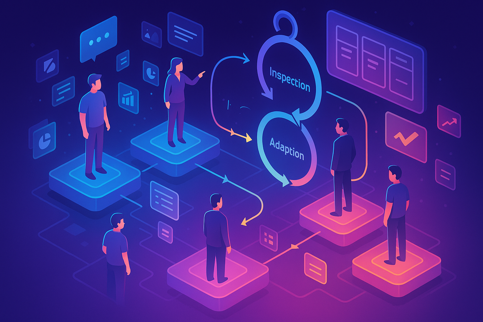 ذینفع هر کسی است که در نتیجهٔ محصول شما نفع/ضرر میبیند: تصمیمگیران بودجه، کاربران، تیمهای پشتیبان، واحدهای کسبوکار و… . مدیریت ذینفعان یعنی شناسایی آگاهانهٔ این افراد، همراستاسازی انتظارات، مشارکتدهی در بازخورد، و اطلاعرسانی منظم بر مبنای شواهد. در اسکرام، این کار قلبِ تجربهگرایی است: شفافیت → بازرسی → سازگاری. خودِ چارچوب میگوید: «اسکرام تیم و ذینفعانش نتایج را بازرسی کرده و برای اسپرینت بعد سازگار میشوند»؛ و برای این کار، مصنوعات باید شفاف باشند و نقشها بهدرستی همکاری ذینفعان را تسهیل کنند.