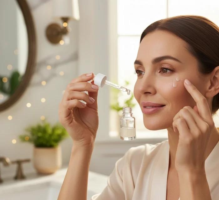سرم دور چشم: سرمهای تخصصی با هیالورونیک اسید، رتینول و ویتامین C و E به کاهش چین و چروک و روشن شدن پوست کمک میکنند. استفاده دوبار در روز توصیه میشود.