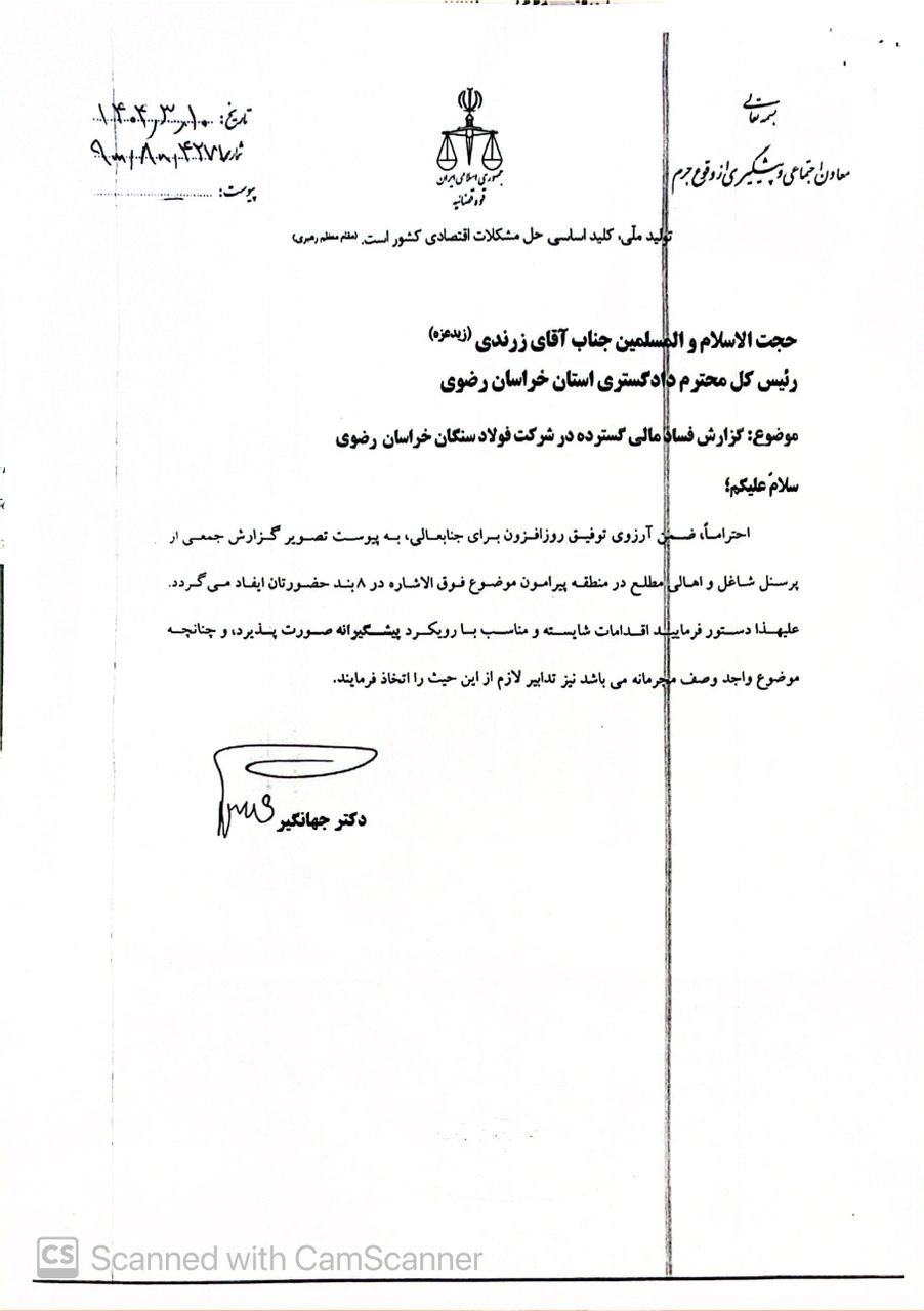 در حالی که دکتر جهانگیر، معاون اجتماعی و پیشگیری از وقوع جرم قوه قضائیه، طی دو نامه رسمی خطاب به رئیس سازمان بازرسی کل کشور و رئیس کل دادگستری استان خراسان رضوی نسبت به وقوع فساد مالی گسترده در شرکت فولاد سنگان هشدار داده و خواستار پیگیری فوری و جدی شده، اکنون خبرهایی از انتصاب مدیر فعلی همین مجموعه در یکی از کلیدیترین شرکتهای معدنی استان کرمان یعنی گهر زمین به گوش میرسد!