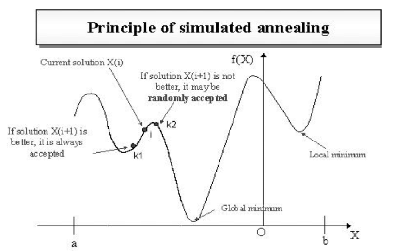 - پرهیز از افتادن در کمینههای محلی: به دلیل پذیرش راهحلهای بدتر در ابتدا، به بهینه سراسری نزدیک میشه.
