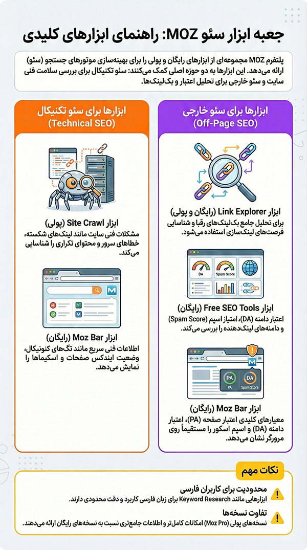 🔊 اگر فرصت خوندن کل مقاله رو نداری یا دوست داری مفاهیم رو شنیداری یاد بگیری، این پادکست دقیقاً برای توئه. تو این اپیزود بهصورت خلاصه و کاربردی توضیح میدیم که سایت MOZ چیه، چه ابزارهایی داره و چطور میتونی قبل از ساخت یا خرید بک لینک ازش استفاده کنی.