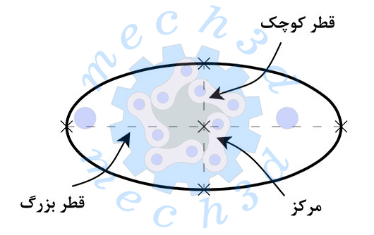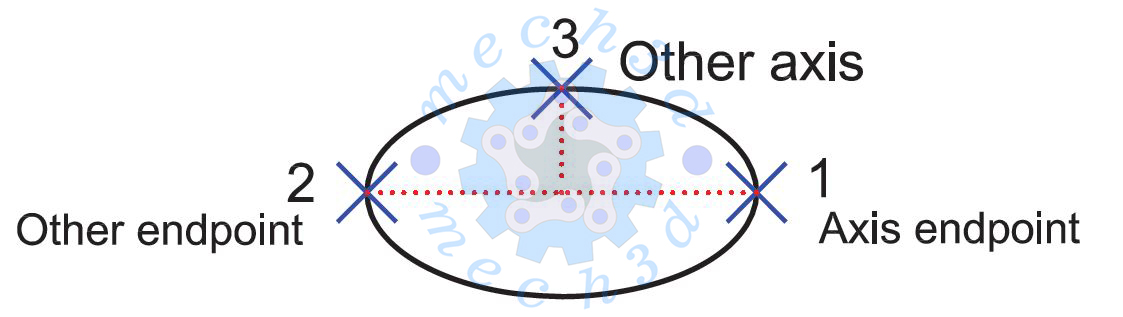 بعد از اجرای این دستور باید سه نقطه به شرح زیر مشخص کرد. نقطه اول و دوم بیان کننده طول قطر بزرگ و نقطه سوم بیانگر نصف قطر کوچک است.