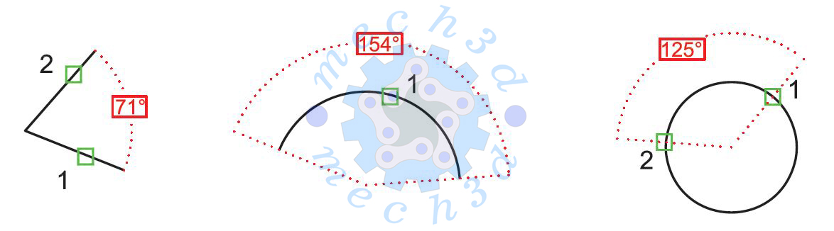 زیر دستور Angle: بعد از اجرای این زیر دستور (با تایپ حرف A و زدن اینتر) میتوانید زاویه بین دو خط، زاویه یک کمان و یا زاویه یک بخش خاص از یک دایره را اندازهگیری کنید.