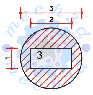 با انجام مراحل زیر ابتدا مساحت دایره بدست میآید و سپس مساحت مستطیل از آن کم میشود.